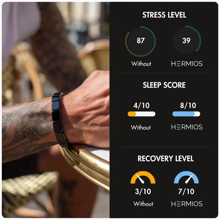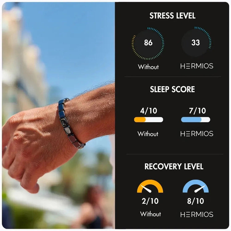 Ja, du kan bära Hermios hela dagen. Armbandet är designat för att vara bekvämt nog för att användas hela dagen, från möten till träning, och ger kontinuerlig stöd för ditt fokus och din energi.